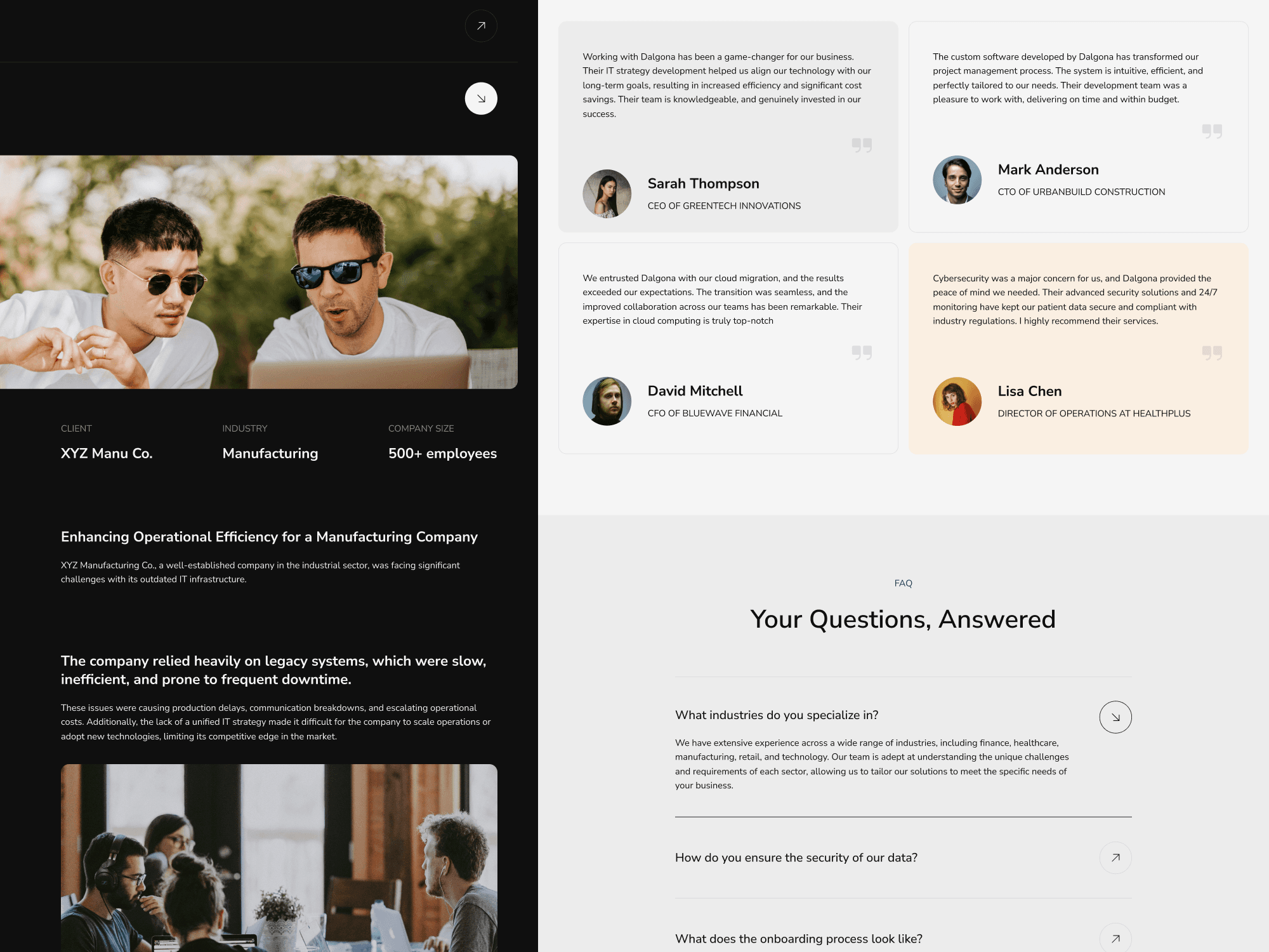 The Dalgona landing page, created with Framer, showcases a sleek and modern template ideal for digital agencies, emphasizing clean design, interactive elements, and customizable sections to highlight services, team, and portfolio.